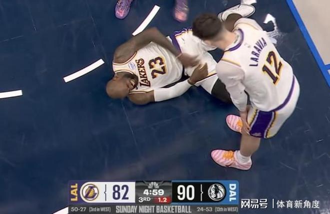 暂停回来,肯纳德再次展现出色传球能力,助攻艾顿得分。凭借这一助攻,肯纳德达成了生涯首个三双的壮举,全场贡献10分、10个篮板和10次助攻。此时,拉拉维亚终于在外线找到手感,命中一记三分。但对方球员也不甘示弱,打成一次2 + 1。更让人揪心的是,詹姆斯在一次对抗中腹股沟被撞,痛苦地倒地长达30秒,但他咬着牙站起来,继续投入到激烈的比赛中。不得不说,今天詹姆斯在场上消耗极大,体力面临着严峻考验。