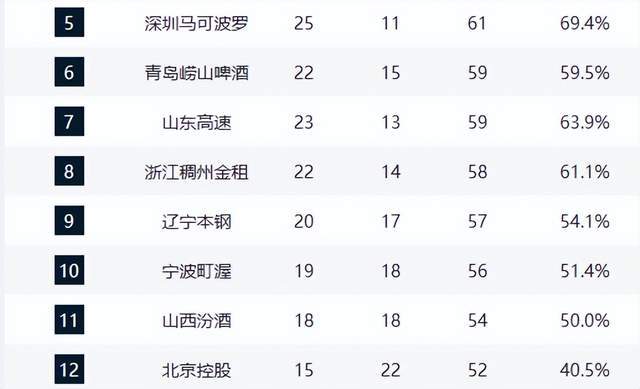 辽宁队这场关键卡位战失利后,战绩变为20胜17负,继续排在第九名,季后赛前景蒙上阴影,真是太憋屈了。宁波队位居第十,山西队以18胜18负的战绩排在第十一名,胜率达到五成,仍有机会冲击季后赛。北控队和吉林队同为15胜22负,分别位列第十二和十三名,处于季后赛边缘,每一场比赛都关乎他们的季后赛命运。福建队、广州队、同曦队排名十四到十六位,剩余几支球队则基本无缘季后赛。