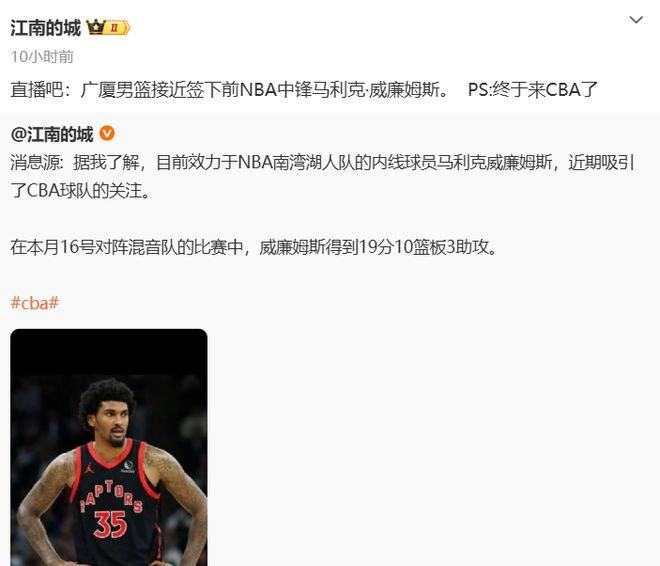 这个马利克·威廉姆斯之前曾多次被传出即将加盟广东队,也是广东球迷最心心念念的内线强力大外人选,没想到马利克最终是被广厦给截胡了,对于广东队来说,打击可是不小。