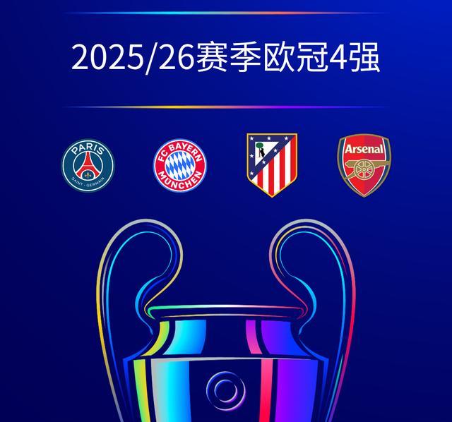 至此,25-26赛季欧冠四强球队与半决赛对阵出炉:巴黎圣日耳曼VS拜仁慕尼黑、马德里竞技VS阿森纳!