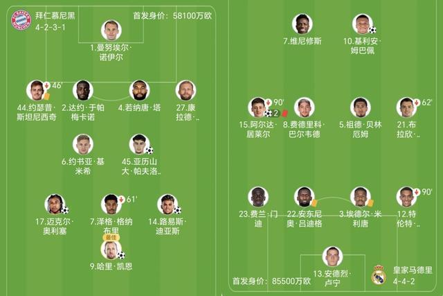 开场仅35秒,40岁诺伊尔传球失误,居莱尔抓住机会直接吊射空门,皇马客场闪电领先,比分0-1,总比分2-2扳平!