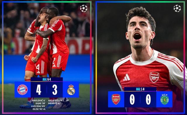 两队上演4-3进球大战,拜仁成功笑到最后以两回合6-4双杀皇马,本赛季欧冠四强宣告出炉!
