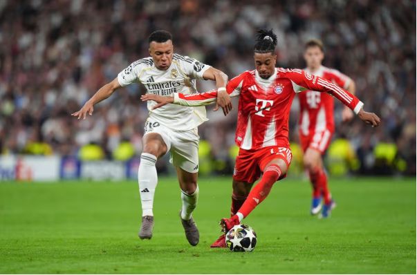 比赛来到90+4分钟,倒计时滴答作响,比分3-3,皇马全力施压,拜仁全力防守。随后他们最后一次从容解围,通过中路串联,球交到凯恩手中。英格兰人抬头观察,迅速将球转移到右侧——奥利塞正在那里等待。
