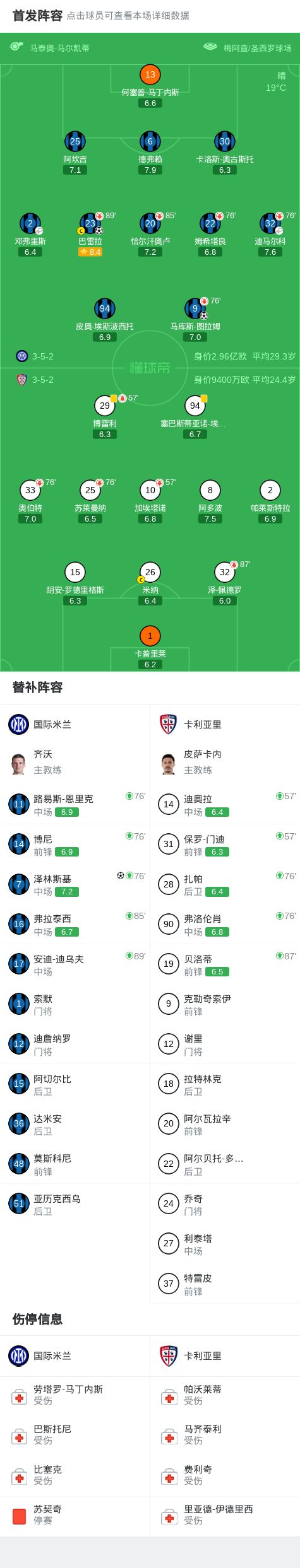 剑南春|国米3-0卡利亚里,图拉姆连场破门,泽林斯基世界波