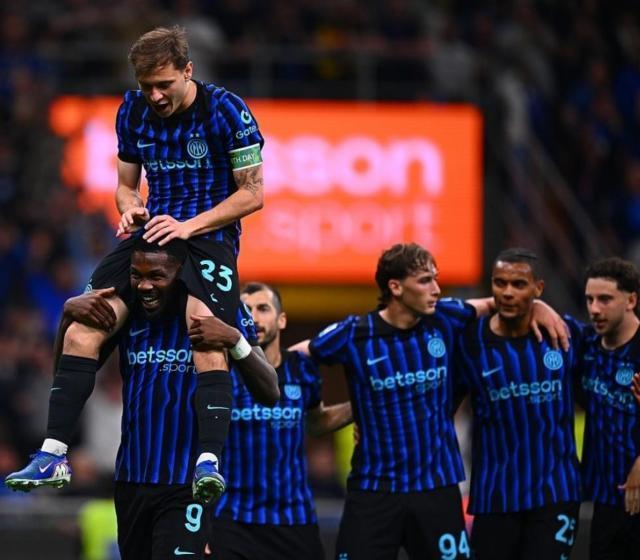 国际米兰阵容(352):何塞普·马丁内斯/阿坎吉、德弗赖、卡洛斯·奥古斯托/邓弗里斯、巴雷拉(89’安迪·迪乌夫)、恰尔汗奥卢(85’弗拉泰西)、姆希塔良(76’杰林斯基)、迪马尔科(76’路易斯·恩里克)/皮奥·埃斯波西托、马库斯·图拉姆(76’博尼)