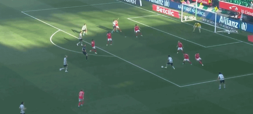 本场比赛进程可谓跌宕起伏。第5分钟,主场作战的葡萄牙体育队便险些破门。卡塔莫低射,被特鲁宾扑了一下后击中立柱,本菲卡开场逃过一劫。