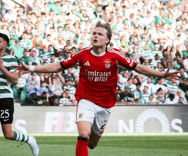 连续2次“大难不死”的本菲卡,在第27分钟率先打破僵局。日本国脚守田英正手球送点,谢尔德鲁普主罚命中,帮助本菲卡在客场取得领先。