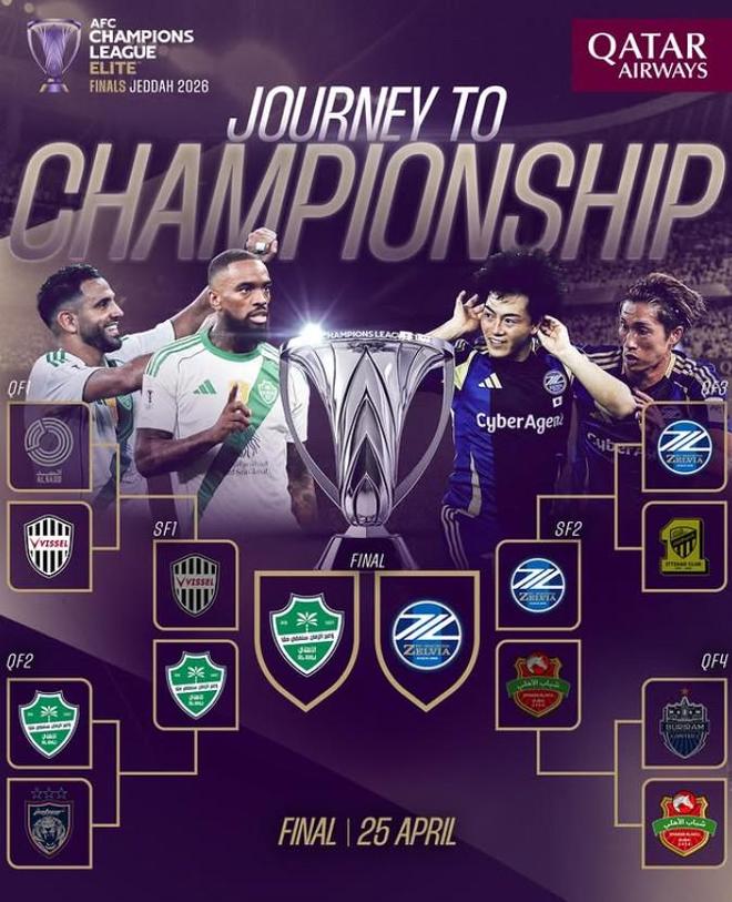 本赛季亚冠精英联赛决赛对阵:卫冕冠军吉达国民vs町田泽维亚