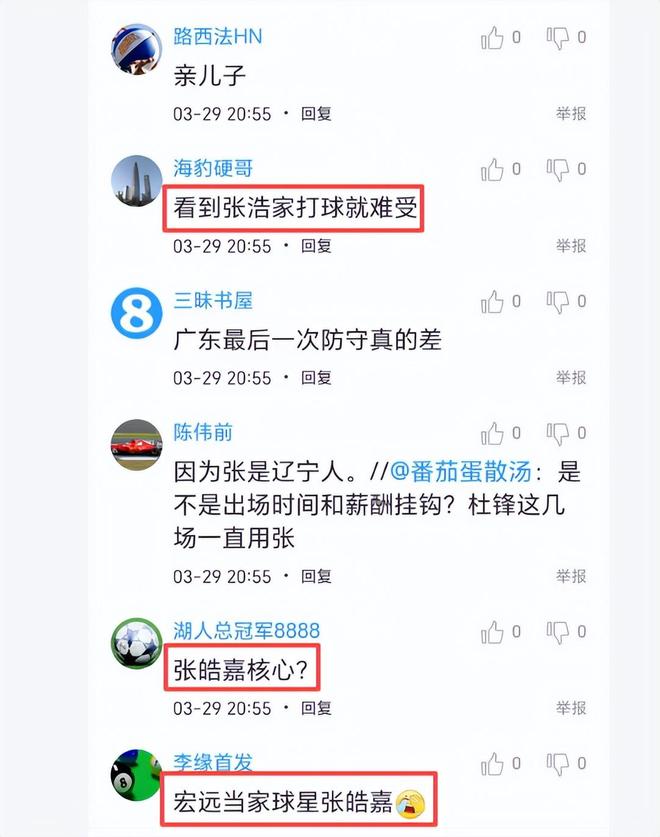 赛后广东球迷质问杜锋,“张皓嘉表现那么垃圾,为何打那么多时间?到底与张皓嘉是什么关系?”、“为何最近两场连续让他打首发,且几乎是打满全场”。也有球迷嘲讽说,你杜锋是不是把张皓嘉当成核心了?“看到张浩家打球就难受”。张皓嘉上一场比赛表现也非常糟糕,打了30分钟才得5分,显而易见,杜锋完全是乱用人,打这样的弱队,徐杰就不应该打这么多时间,而表现非常差的张皓嘉也不应该打这么多时间,而是分摊一些时间给黄明依,总之杜锋今天的用人和轮换,广东球迷非常不爽。你们说呢?
