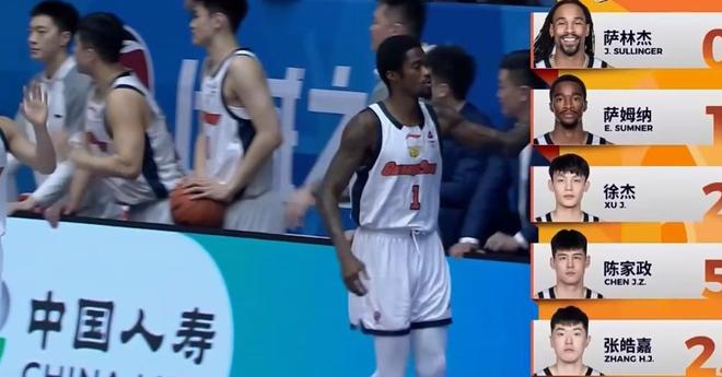 下半场易边再战,萨姆纳陈家政重新回归先发,四川开局连得5分,广东前2攻没有打成,第三次出手给到陈家政,后者稳稳命中底角三分,随着徐杰、萨姆纳两次反击1打0上篮得手,6分03秒徐杰飚进弧顶三分,广东队打出10-2重新夺回场上主动。