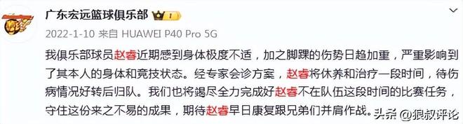 广东男篮官方社媒回应表示:我俱乐部球员赵睿近期感到身体极度不适,加之脚踝的伤势日趋加重,严重影响到了其本人的身体和竞技状态。经专家会诊方案,赵睿将休养和治疗一段时间,待伤病情况好转后归队。我们也将竭尽全力完成好赵睿不在队伍这段时间的比赛任务,守住这份来之不易的成果,期待赵睿早日康复跟兄弟们并肩作战。