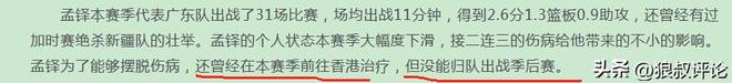 还有媒体称,孟铎为了能够摆脱伤病,还曾经在本赛季前往香港治疗,但没能归队出战季后赛。