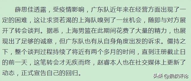 但从沟通层面,赵睿和广东宏远俱乐部并没有存在特别大的问题,去年夏天,赵睿还代表广东出战了全运会,而回归到广东主场效力,获得了大量球迷和媒体送出祝福。