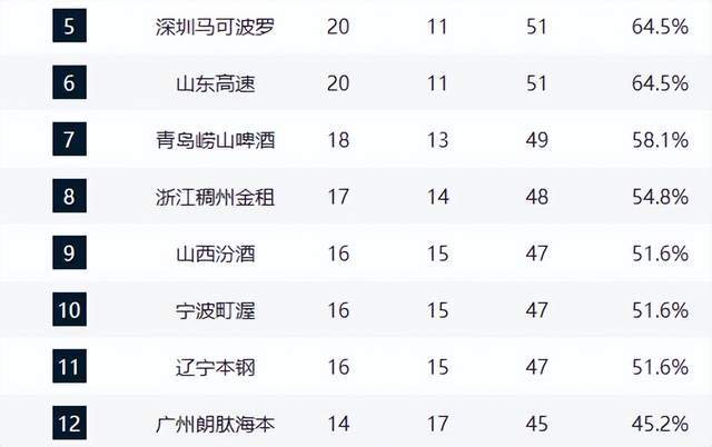 CBA第31轮战罢,季后赛格局趋于明朗,但中下游竞争仍白热化。上海男篮豪取12连胜之后,继续领跑积分榜,广东队则是爆冷输球后,掉出了前3位。黑马深圳男篮豪取一波6连胜,战绩追平北京广东和山东,而辽宁队遭遇2连败之后,排名掉到第11位,严重掉链子了。