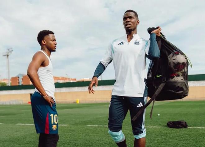 据TyC体育报道,在2026年因肌肉伤势缺席摩纳哥多场比赛期间,博格巴身穿阿根廷国家队队服与法蒂在巴塞罗那的训练基地进行训练。