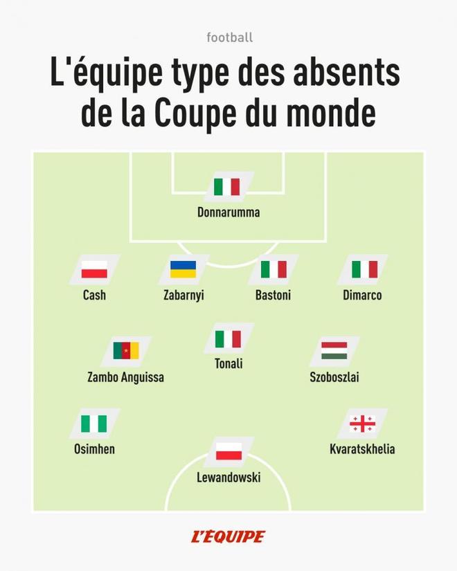北京时间4月2日,《队报》列缺席2026年国际足联世界杯最佳阵容名单。